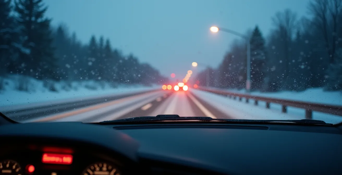 Detecting it requires using all your senses. The most reliable visual cue is a patch of road that looks glossy and wet on a day when it should be dry and frozen. Another powerful indicator is auditory: a sudden silence. If the sound of your tires on the pavement disappears, it likely means they are no longer in contact with the road, but with a sheet of ice. Be especially vigilant in high-risk locations like bridges, overpasses, and shaded areas, which freeze faster than the main roadbed. Along Highway 20, this is particularly true for stretches near the St. Lawrence River where cold, moist air settles.